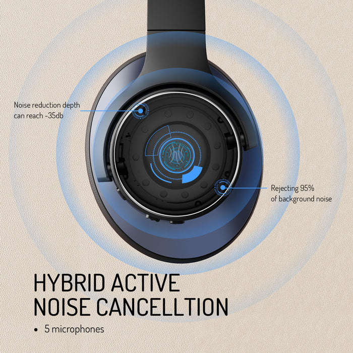 Oneodio A-serien - Bluetooth 5.0 Aktiv støjreducerende trådløse hovedtelefoner - Indbygget mikrofon, Type C opladnings- og bæretaske