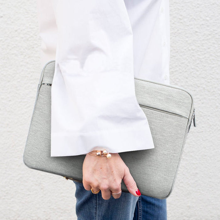 Unsere Laptophülle verfügt über eine Innentasche zur sicheren Aufbewahrung Ihres Notebooks. Darüber hinaus ist die zusätzliche Tasche an der Vorderseite der Hülle ideal, um wichtige Gegenstände wie Dokumente, Schlüssel, USB-Kabel, eine Maus oder Stifte griffbereit aufzubewahren.