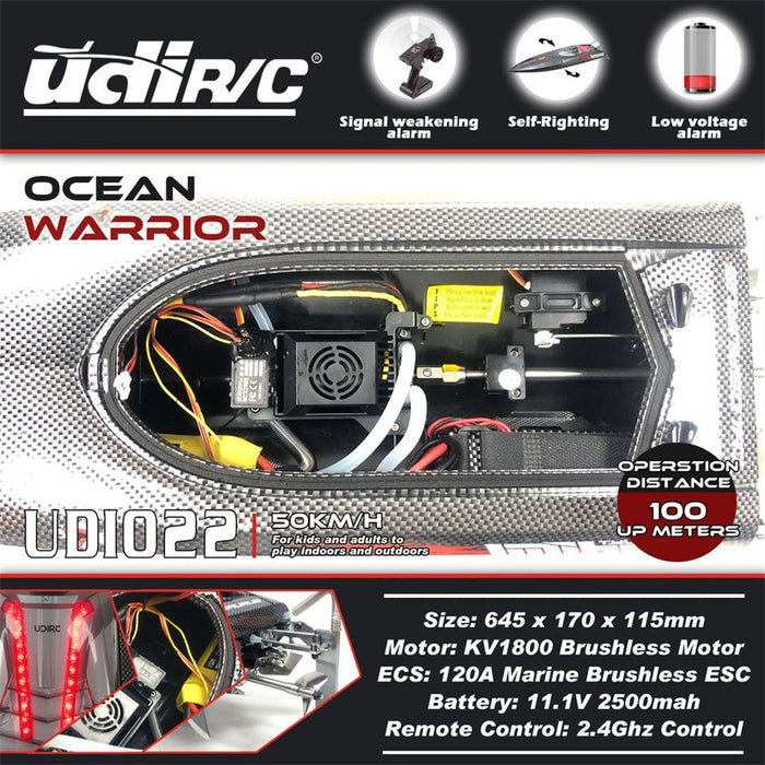 Machen Sie sich bereit, mit dem Hochgeschwindigkeits-RC-Boot UDIRC UDI022 für Furore zu sorgen! Mit seinem schlanken Carbonfaser-Musterdesign und seiner beeindruckenden Leistung ist dieses Boot sowohl für Rennsportbegeisterte als auch für Gelegenheitsbastler perfekt. Tauchen Sie ein in die aufregende Welt ferngesteuerter Wasserfahrzeuge und erleben Sie beispiellose Geschwindigkeit und Agilität mit diesem Spitzenmodell.