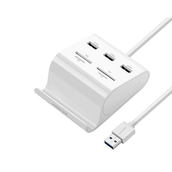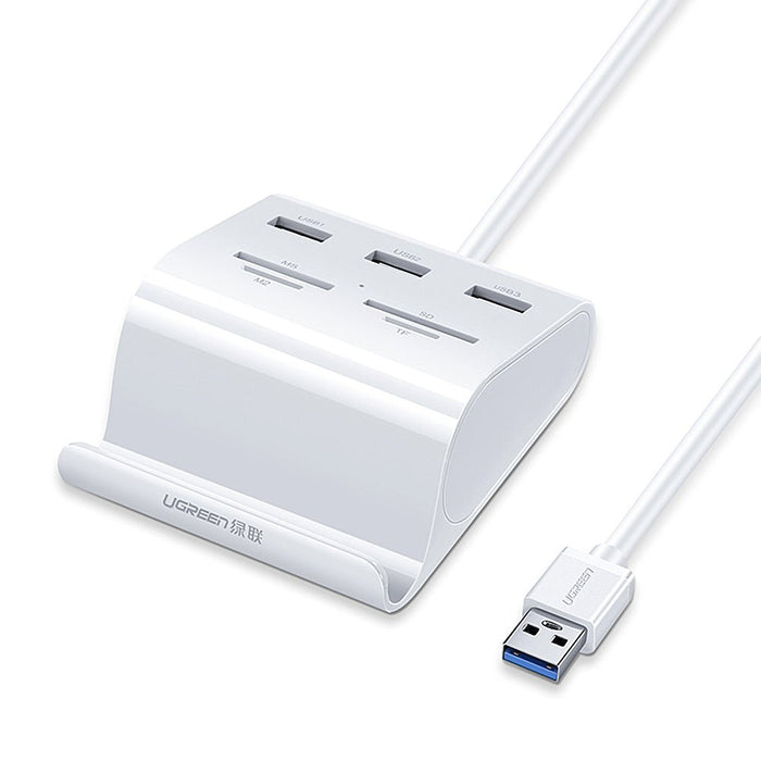 Der 7-in-1-USB-Hub UGREEN US156 ist ein multifunktionales Gerät, das Ihren Arbeitsbereich erweitern und verbessern soll. Ausgestattet mit 3 USB 3.0-Anschlüssen und 4 Kartenlesersteckplätzen stellt dieser elegante Hub sicher, dass Sie über alle Anschlüsse verfügen, die Sie für nahtlose Produktivität und Unterhaltung benötigen. Sie müssen sich keine Gedanken über Installationsprozesse oder Kompatibilitätsprobleme machen, da dieses Plug-and-Play-Gerät mit einer Vielzahl von Betriebssystemen funktioniert. Mit der ergonomischen Standfunktion können Sie Ihr Telefon oder Tablet freihändig betrachten und Multitasking mühelos durchführen.