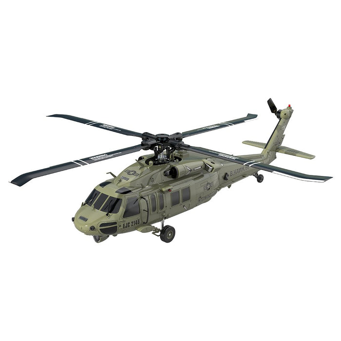 Expertly crafted based on the 47:1 scale reduction of the US UH60-Blackhawks helicopter, the E200 boasts high simulation appearance details, cool lights, and left and right movable side doors. Its shock-absorbing landing gear ensures smooth landings, even for novice pilots.