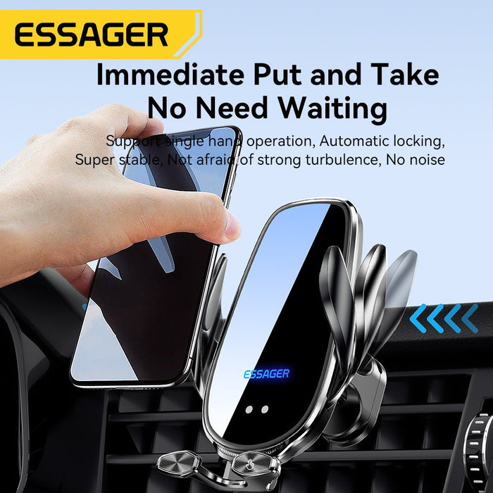 ESSAGER A4 Wireless Car Phone Holder Charger - 15W 10W 7.5W 5W, Air Vent Clamp Bracket, Compatible with iPhone 13, 14, 14 Pro, 14Pro Max, Xiaomi 13pro, Huawei Mate50 - Ideal for Safe and Efficient In-car Charging