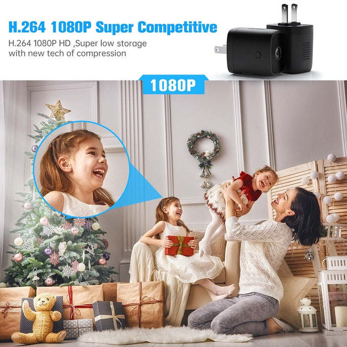 The Wi-Fi nanny camera has hotspots, making it capable of recording without Wi-Fi. Simply plug it into a wall outlet and insert an SD card (not included) to enable the mini Wi-Fi camera to auto-record HD video files. The USB camera then automatically records and overwrites the oldest files once the SD card is full, ensuring continuous monitoring.
