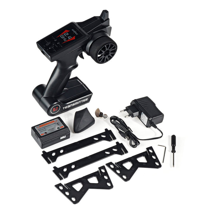 Tome el control total con el control remoto 2.4G del modelo, que ofrece una impresionante distancia remota de 120-150 m. El transmisor requiere 3 pilas AA (no incluidas) y cuenta con corrección automática de guiñada para garantizar una dirección y un manejo precisos.
