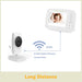 Wykorzystując technologię cyfrowej bezprzewodowej transmisji dźwięku i obrazu w paśmie 2,4 GHz, ta niania zapewnia wyraźną i nieprzerwaną komunikację. Odległość transmisji na zewnątrz sięga do 300 M (bez przeszkód), zapewniając duży zasięg. Monitor obsługuje także wiele języków, takich jak angielski, francuski, hiszpański, portugalski, włoski, niemiecki, turecki i rosyjski. Całkowite wymiary urządzenia to 163 x 136 x 70 mm, a waga 460 g.