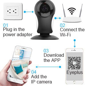 Kezdje azzal, hogy USB-kábel segítségével táplálja a fényképezőgépet, majd jelentkezzen be az Eyeplus alkalmazásba, hogy 2,4G Wi-Fi-n keresztül csatlakoztassa az eszközt (vegye figyelembe, hogy ez a kamera kizárólag 2,4Ghz-es Wi-Fi-hálózatokkal működik, és nem támogatja az 5G Wi-Fi-t) . A kamera több platformmal, például telefonokkal, számítógépekkel és táblagépekkel kompatibilis a további kényelem érdekében. Az optimális teljesítmény érdekében feltétlenül olvassa el és kövesse a mellékelt utasításokat. Segítségért forduljon bizalommal ügyfélszolgálatunkhoz.