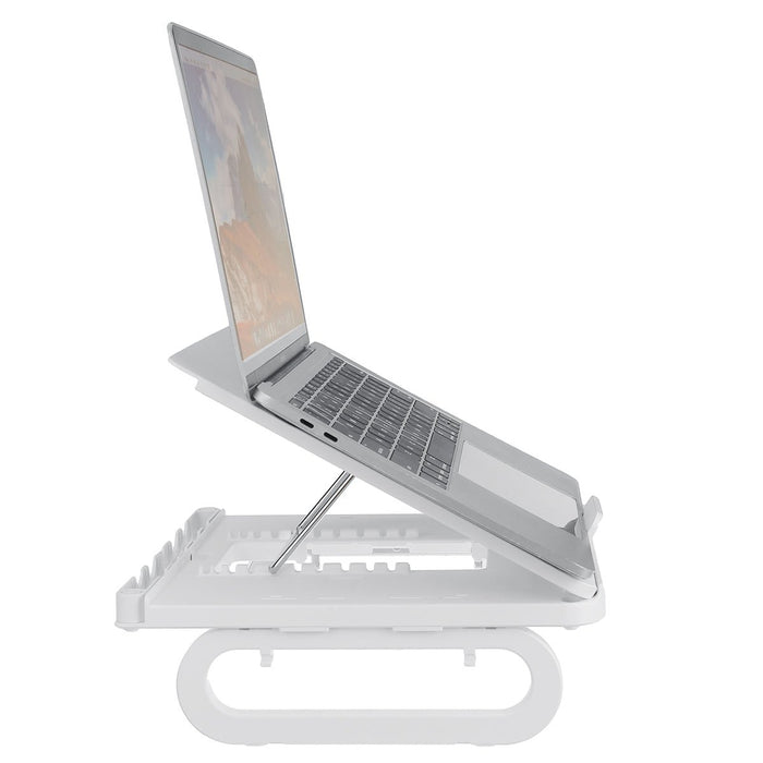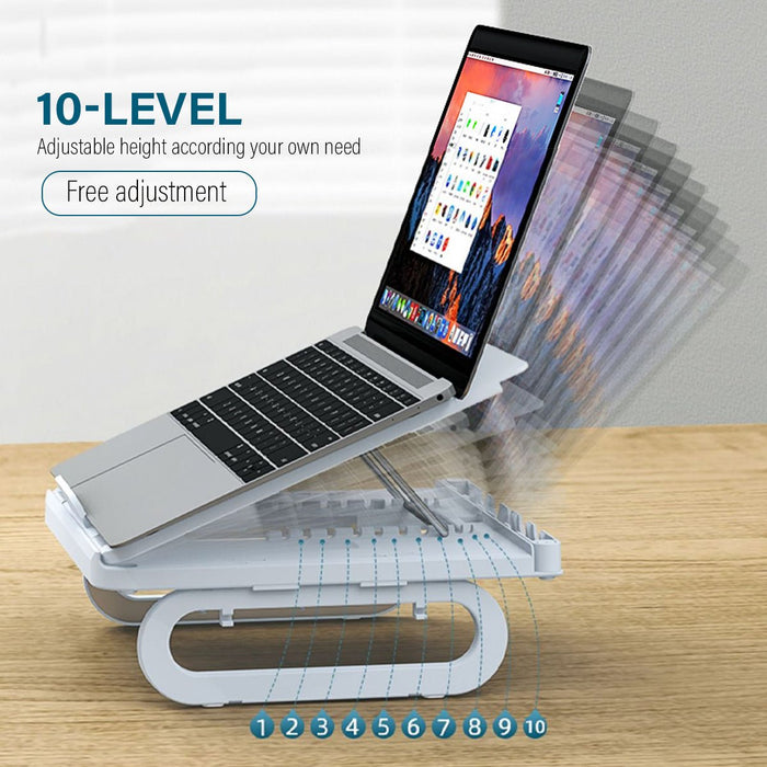 Exkluzív és kortárs ergonomikus laptopállványunk a műanyag és az alumíniumötvözet tökéletes ötvözésével készült. Klasszikus fekete-fehér árnyalatokban kapható, ez a termék használható lábtámaszként vagy HUB-ként, egyedi preferenciái alapján. Könnyű kialakítása ellenére figyelemreméltó, 10 kg-os, 22 fontnak megfelelő súlykapacitást mutat, így ideális választás laptopokhoz.