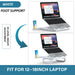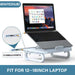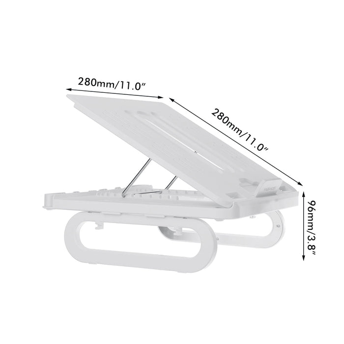 Az ergonomikus laptopállványt úgy tervezték, hogy kényelmesen elhelyezze a 12-18 hüvelykes laptopokat. Praktikus és helytakarékos teljes méretei 280 x 280 x 96 mm vagy 11,0 x 11,0 x 3,8 hüvelyk.
